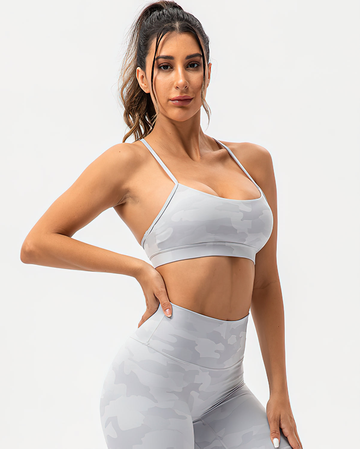 Harper Camo Y Sports Bra - Grey