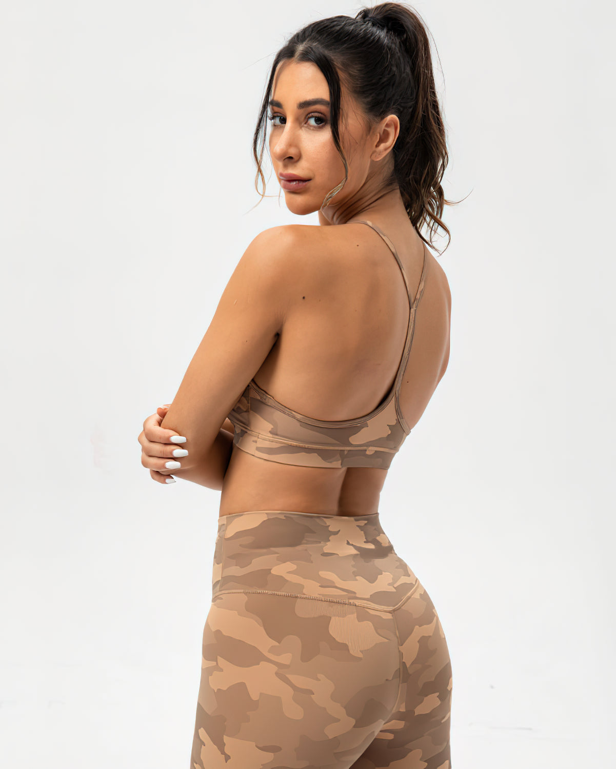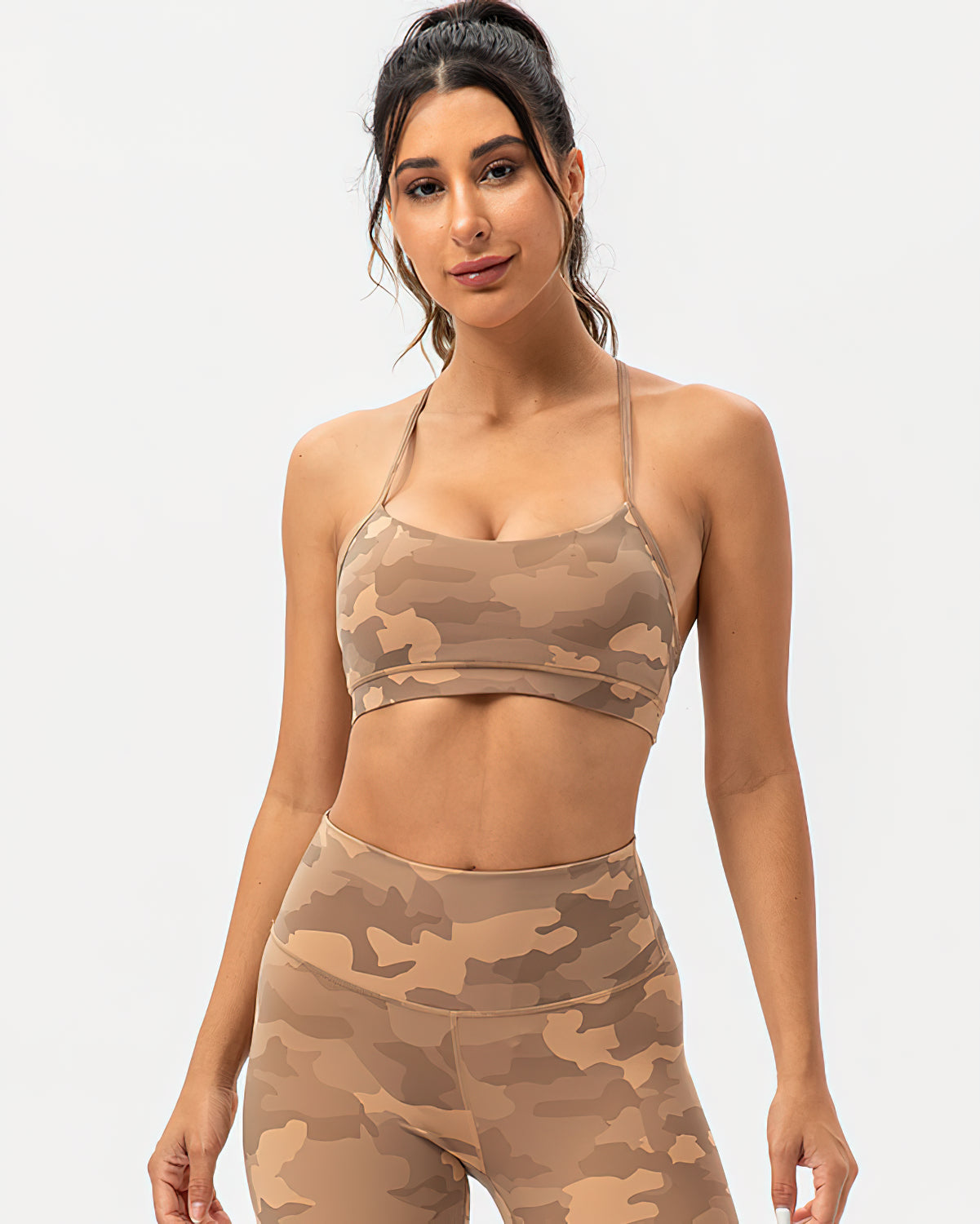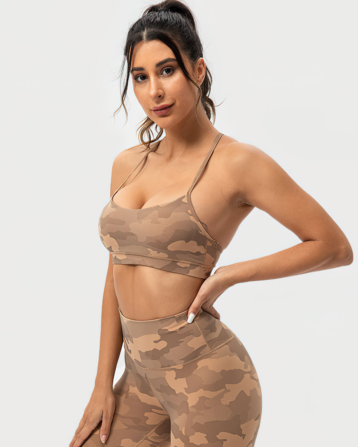 Harper Camo Y Sports Bra - Teak