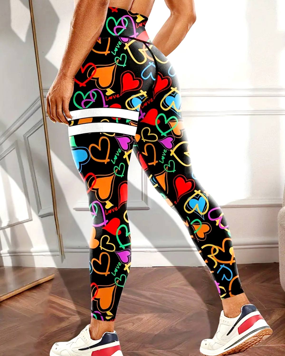 Feel the rhythm of your workout with the Heartbeat Leggings, designed to fuel your energy and style! Featuring a bold, heart-shaped pattern in vibrant colors, these leggings are full of life. The overlapping hearts and repeated "Love" graphics give a playful touch, while a sleek white stripe down the sides adds a dynamic contrast.