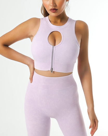 This rib-knit top showcases a slinky silhouette pierced with an eye-catching keyhole cut-out at the bodice, round neck, and low arm cut. It has an easy on and off zipper while the racerback design lets you find the perfect fit to power through anything with ease.