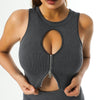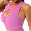This rib-knit top showcases a slinky silhouette pierced with an eye-catching keyhole cut-out at the bodice, round neck, and low arm cut. It has an easy on and off zipper while the racerback design lets you find the perfect fit to power through anything with ease.