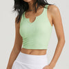 Its soft, flexible fabric gently conforms to your body, while the small v-neckline adds a hint of femininity. Whether you're hitting the yoga studio or brunch with friends, this versatile top promises to be your go-to essential for any occasion.