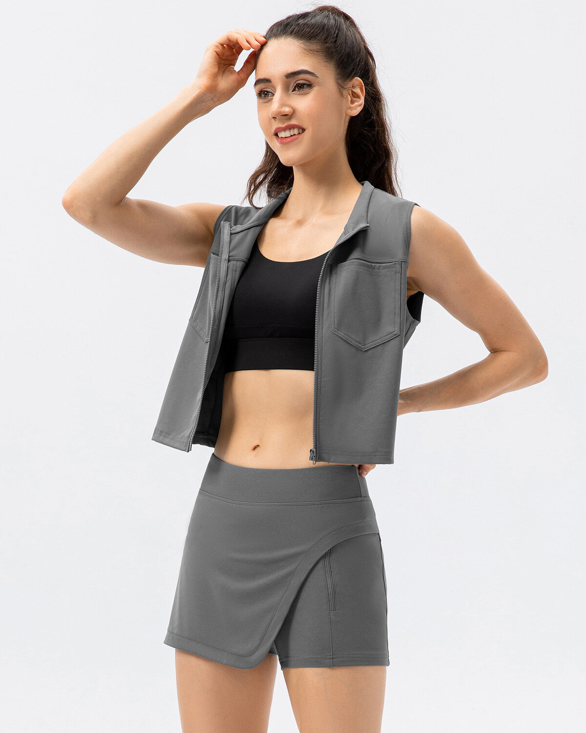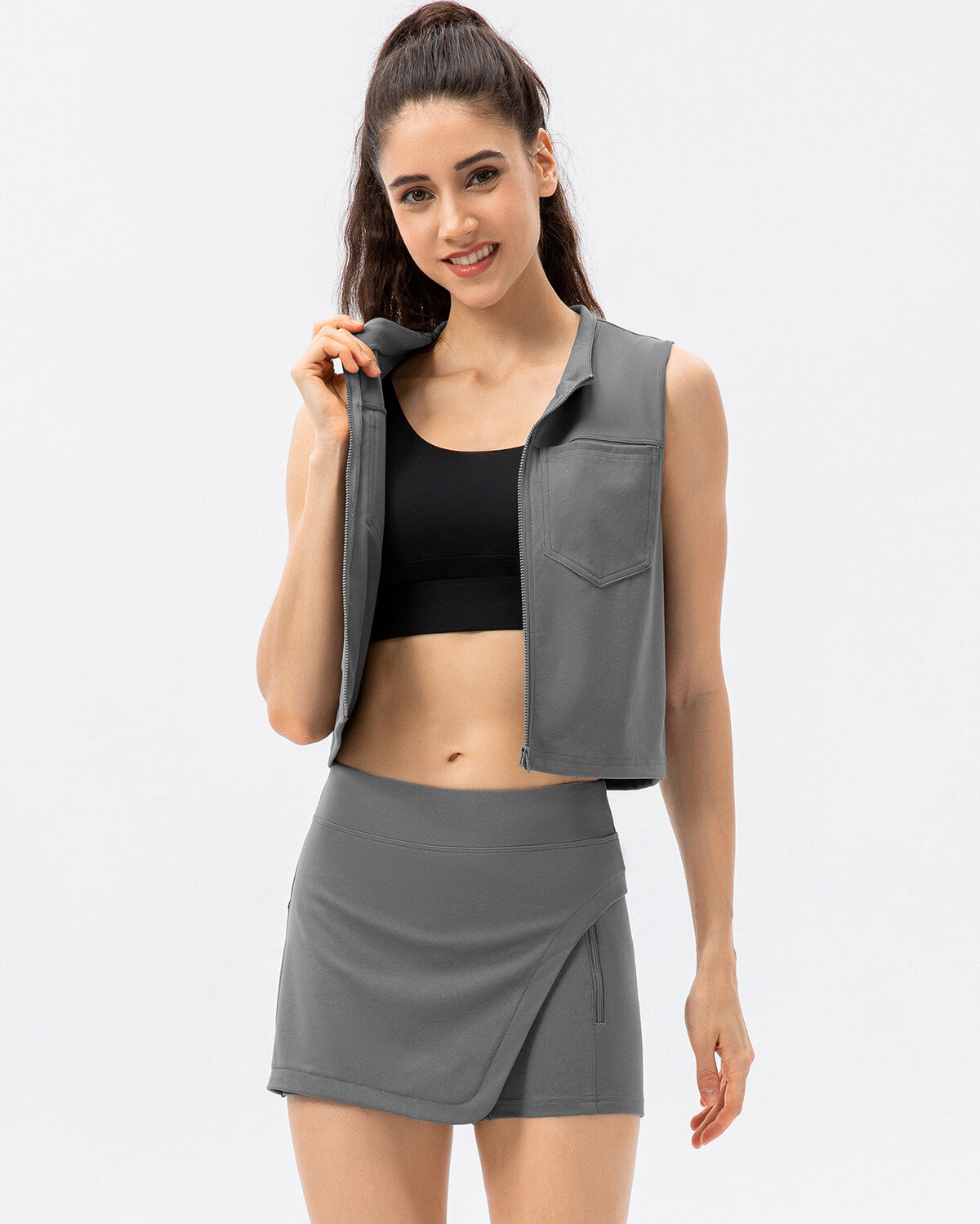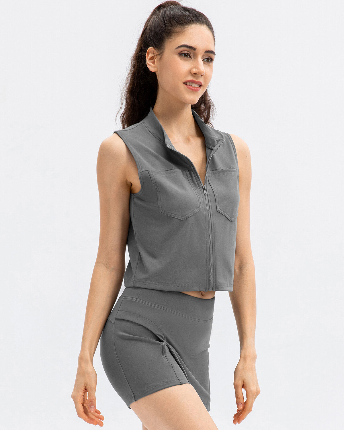 The Katherine Sports Vest is a stylish and versatile sleeveless sports vest designed for the active woman. With its zip-up front, chest pockets, and stand collar, it exudes a chic and cool style suitable for both the gym and the streets. It can be paired with your favorite sports bra to complete the sporty look.