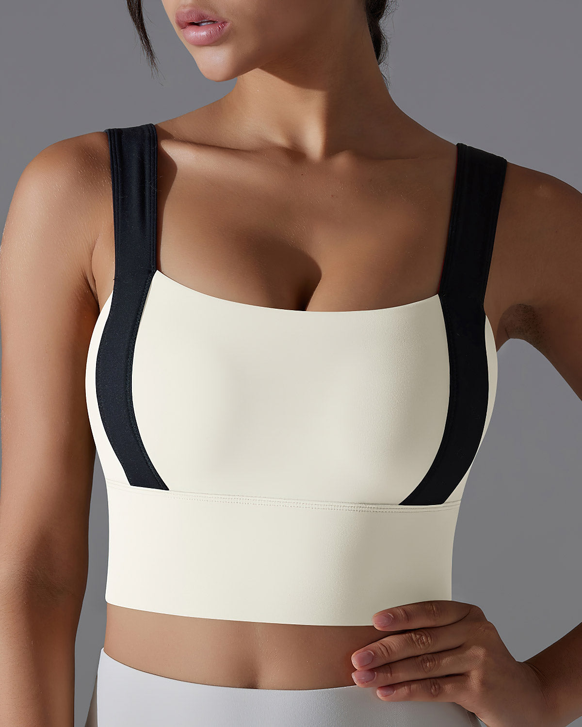 Featuring a bold color-blocking design and wide straps to relieve pressure, this bra adds style to your routine while providing the support you need for medium-impact activities.
