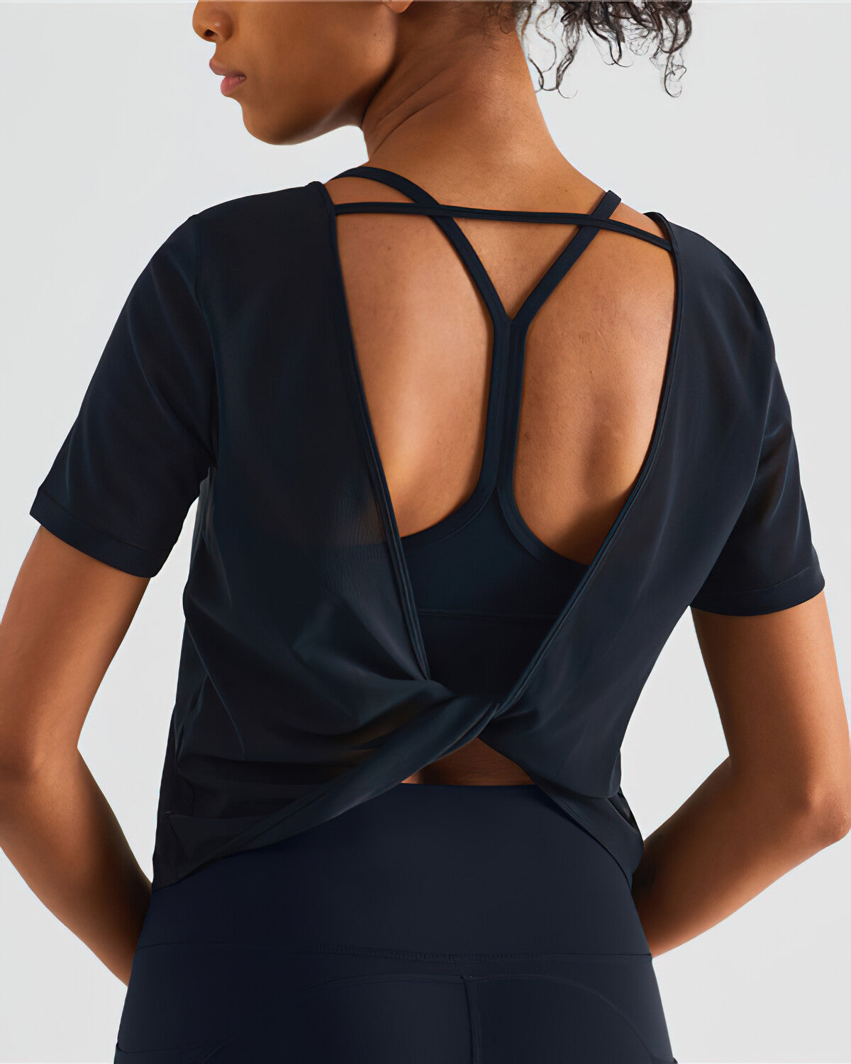 Its cooling mesh material and open back design with a twisted hem ensure optimal ventilation and a flattering fit, making it perfect for layering over your favorite sports bra. Whether you're hitting the yoga mat, crushing your Pilates session, or conquering your daily activities, the Liberty T-Shirt is your go-to choice for effortless performance and style.