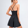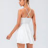 Introducing the Margaret Athletic Dress - the evening gown of workout dresses. This one-piece dress features cross-back thin shoulder straps, sleek seams, and lightweight stretch fabric that create a gorgeous silhouette. With built-in shorts and pockets, it's perfect for sports like tennis or running.