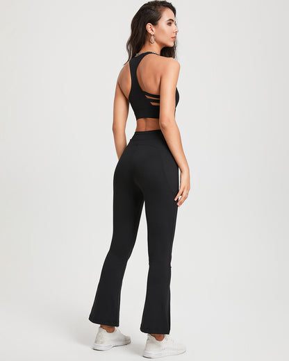 Introducing the Molly Flare Leggings - a modern take on a classic style. These high-waisted leggings feature a flexible waistband for a secure fit. The flattering flare design sits just off the ground, enhancing your figure. Made from second-skin fabric, they hug your curves while providing unmatched comfort.