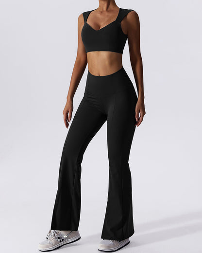 The distinctive flare bottom design with a front slit adds a touch of elegance, setting these leggings apart from the rest. Not only do they offer a compressive fit and sleek single-tone design for a tailored look, but they also feature flattering seamlines that sculpt and elongate your legs, enhancing your confidence during any activity.