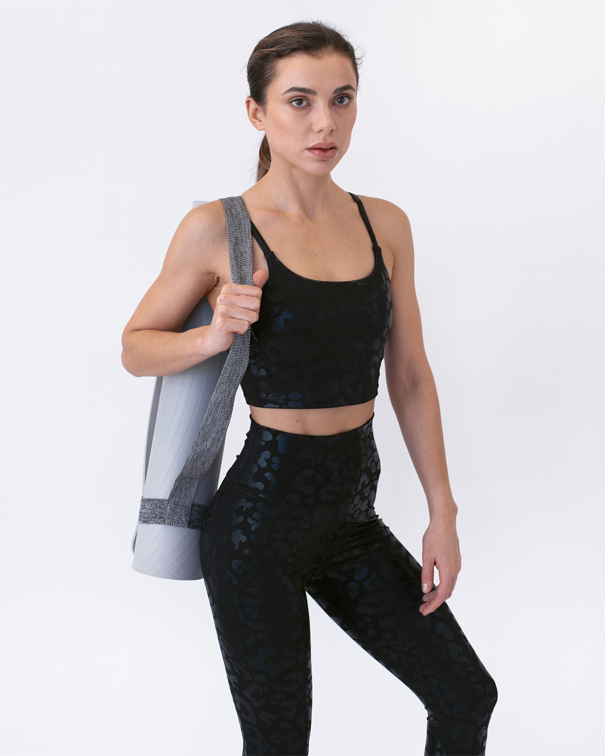 Also available: Nicola Metallic Leopard Sports Bra - Black and Nicola Metallic Leopard Crop Top - Black.