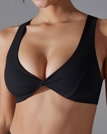 Unleash your boldest self in the Rosalie Sports Bra, designed to turn heads with its deep V-neck and twist front detail. This street-ready style combines fashion and function, so you stay supported and confident, no matter the intensity of your workout.