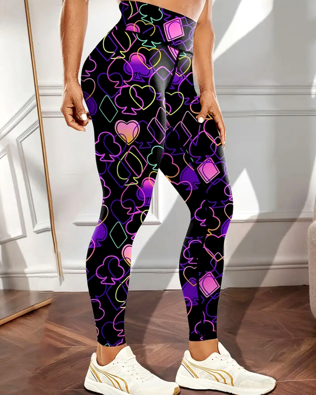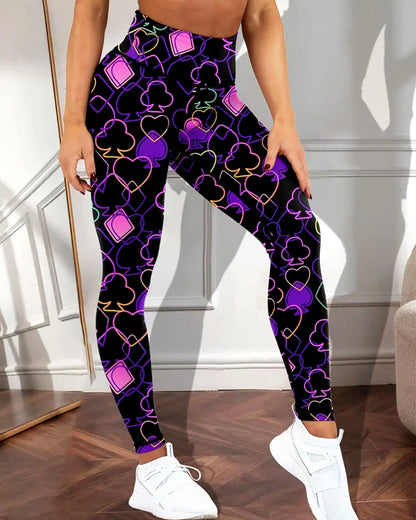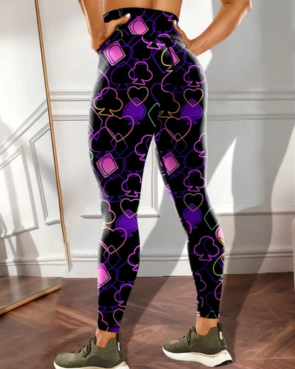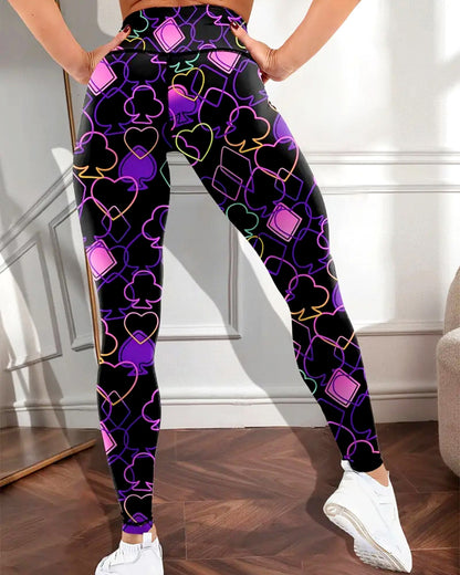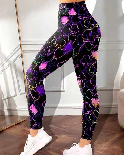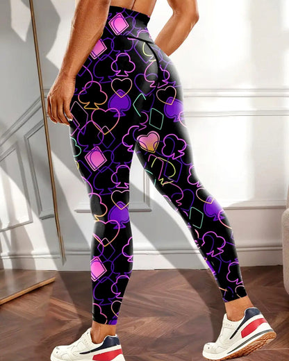 Deal yourself a winning hand with Royal Card Leggings. Featuring the iconic club, heart, diamond, and spade designs, these leggings are a playful reminder to bring your A-game to every workout. Crafted with moisture-wicking, quick-dry fabric, they'll keep you cool and comfortable, whether you're crushing a HIIT class or flowing through yoga poses.